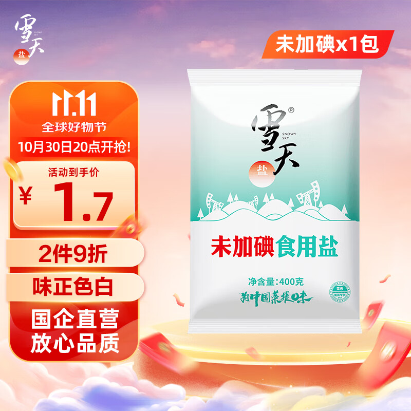 包邮 雪天精制盐400g【未加碘】高纯食用盐天然深层岩盐家用调味品烹饪调料
